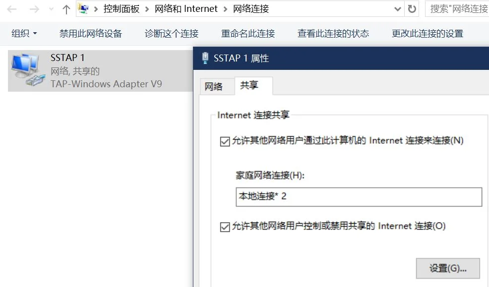 在生成虚拟网卡热点后,需要:右键虚拟网卡【SSTAP 1 - 属性 - 共享】,共享到创建的虚拟网卡热点【本地连接* 11】,这时候连接创建的热点,就能全局魔法了。